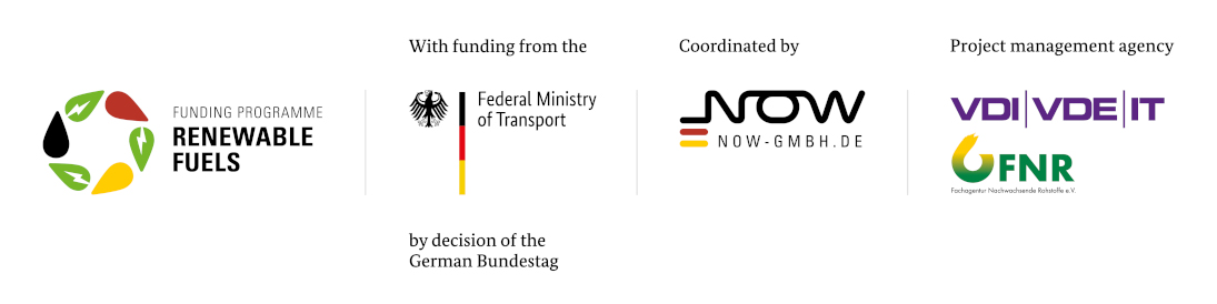 Project InnoFuels is funded with a total of 5,24 million euros by the Federal Ministry for Transport as part of the Funding Programme Renewable Fuels. The funding guideline for the development of renewable fuels is coordinated by NOW GmbH and supported by the project management agencies VDI/VDE Innovation + Technik GmbH and Fachagentur Nachwachsende Rohstoffe e. V. (Agency for Renewable Resources.