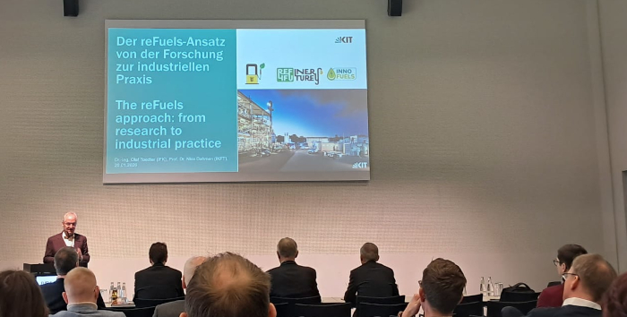 InnoFuels war auf dem Kongress mit mehreren hochkarätigen Beiträgen vertreten und brachte seine wissenschaftliche und systemische Expertise gezielt in den Dialog zwischen Forschung, Industrie und Politik ein: Zum Beispiel mit dem Fachvortrag mit dem Titel "Der reFuels-Ansatz von der Forschung zur industriellen Praxis" von Prof. Nicolaus Dahmen und Dr. Olaf Toedter (beide KIT). Der Beitrag stellte zentrale Ergebnisse und Zusammenhänge der thematisch eng verzahnten Projekte InnoFuels, REF4FU und reFuels vor. Im Fokus standen: