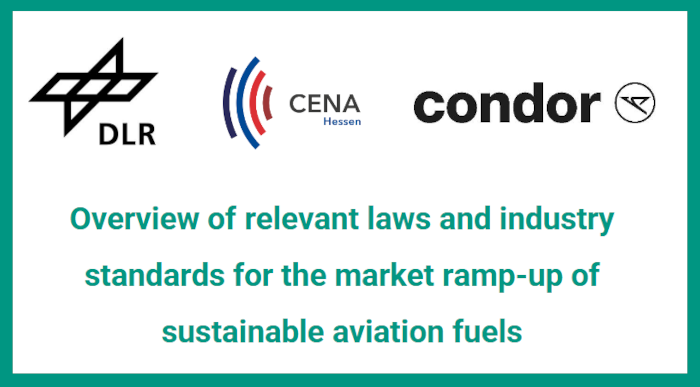 This review examines the regulations, laws and industry standards that define the framework conditions for the market ramp-up of SAF. International, EU-wide and national regulations and plans are analyzed and the responsible institutions are presented and classified. The publication was produced by the Aviation focus area, which includes the German Aerospace Center (DLR), the Competence Center for Climate and Noise Protection in Aviation, CENA Hessen and the airline Condor. The report is available at this link.